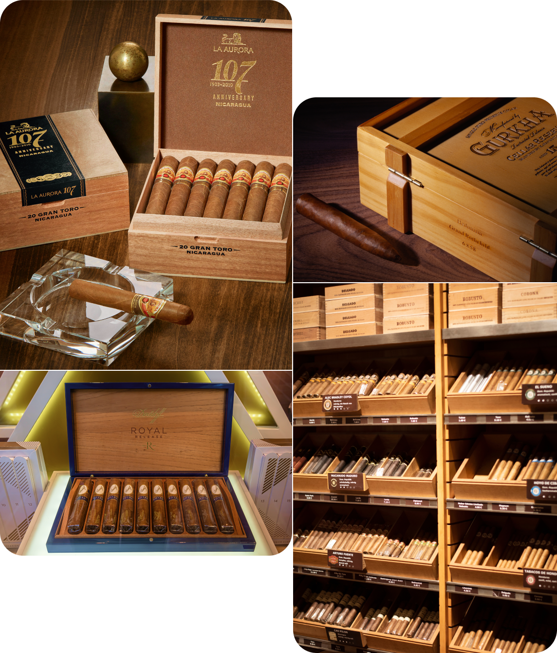 In our catalog you can find the most exclusive Cuban cigar brands such as Bolivar, Cohiba, Monecristo, Partagas, Romeo y Julieta, Trinidad , Ramon Allones, Vegueros and also Top-Selling New-World cigar brands such as Davidoff, Camacho, Oliva, AJ Fernandez, Gurkha, La Aurora, Plasencia, VegaFina and many other.